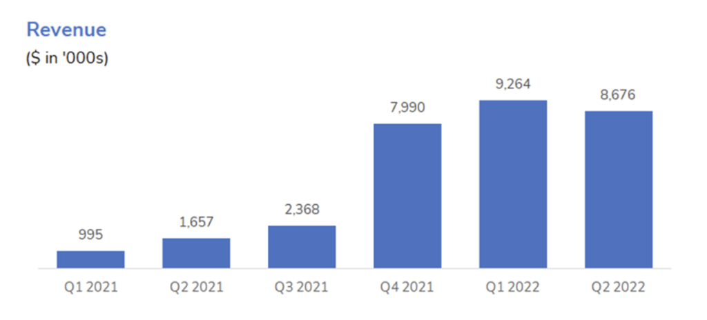 - Revenue for the six months ending June 30th, 2022 increased 6.8x over the prior year to $18.0 million.