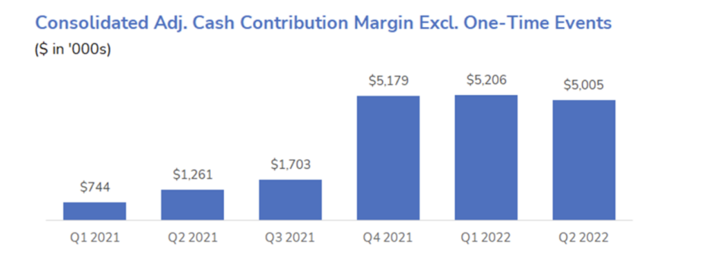 - Second quarter Adjusted Cash Contribution Margin excluding one-time events increased 4.0x year-over-year.