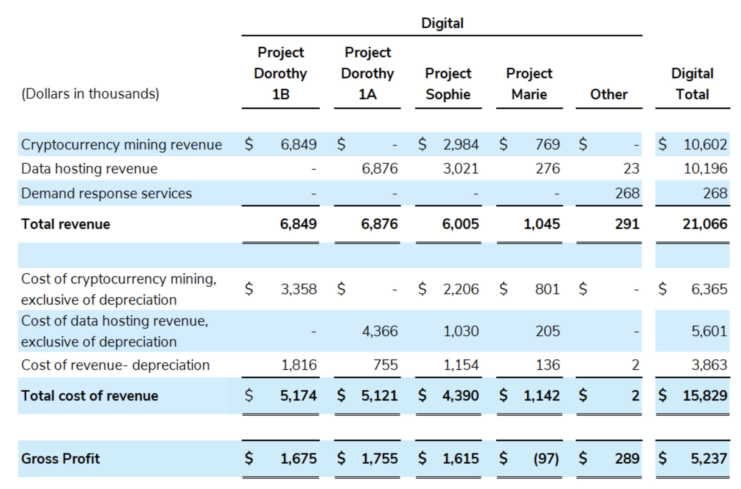 - Project Dorothy 1A and 1B were online for the full year of 2024, generating $13.7 million and $17.0 million in Bitcoin hosting and mining revenue, respectively.