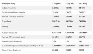 *Note: Curtailed Energy is energy produced by the wind farm and consumed by Soluna’s Project Dorothy which the grid either could absorb or did not deem as economically valuable.