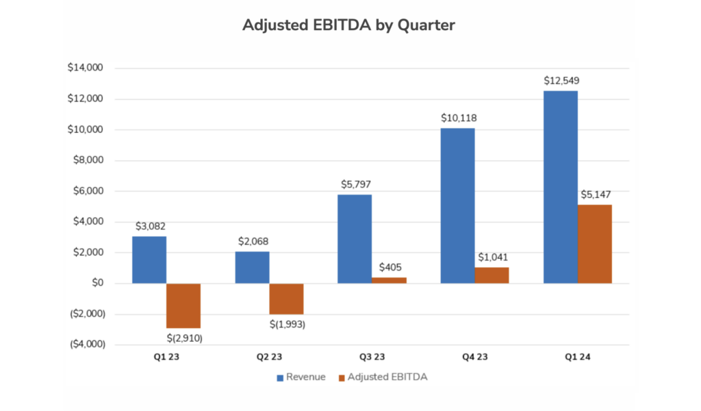 • Record Adjusted EBITDA  – Adjusted EBITDA (non-GAAP) ramped to $5.1 million compared to the first quarter of 2023 of ($2.9) million,  an increase of $8.1 million driven by strong revenue growth and cost discipline.