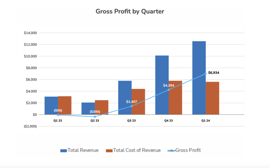 • The strong first quarter results of $12.6 million in revenue represented a 24% increase as compared to the fourth quarter of 2023 and an increase of 307% compared to the first quarter of 2023.