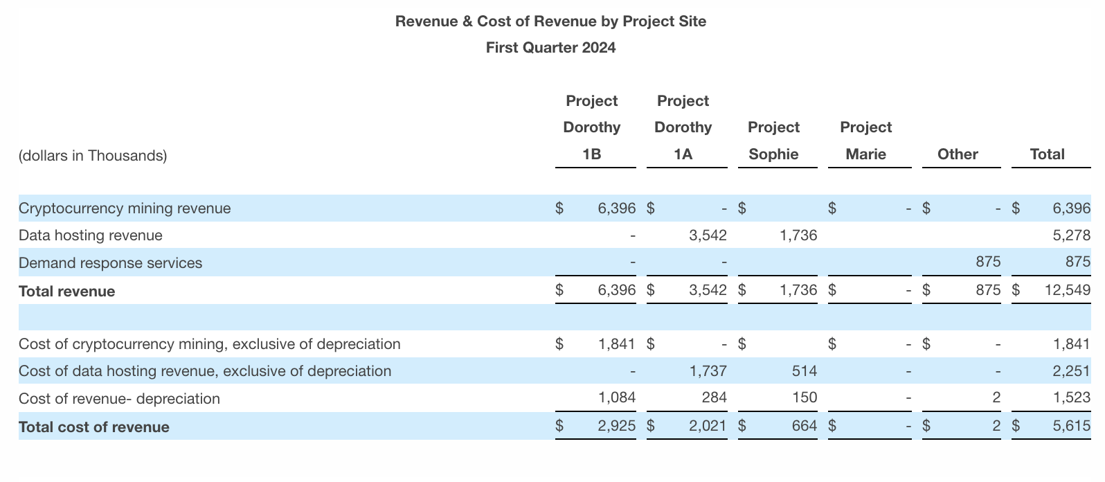 • Gross Profit improved by nearly $7.0 million – as operations pivoted to Data Hosting and Project Dorothy reached full energization, costs of revenue either met or exceeded expectations, enabling strong Gross Profit growth from ($0.1 million) for the first quarter of 2023 to $6.9 million for the first quarter of 2024.
