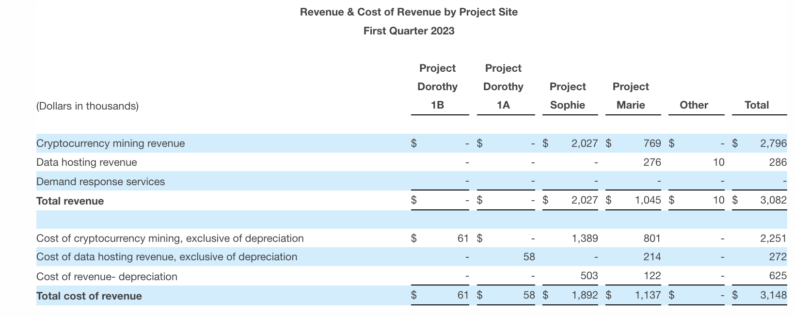 • Data Hosting Revenue increased by approximately $5.0 million – compared to the first quarter of 2023, primarily related to the energization and deployment of hosting customers at Project Dorothy 1A in the second quarter of 2023.