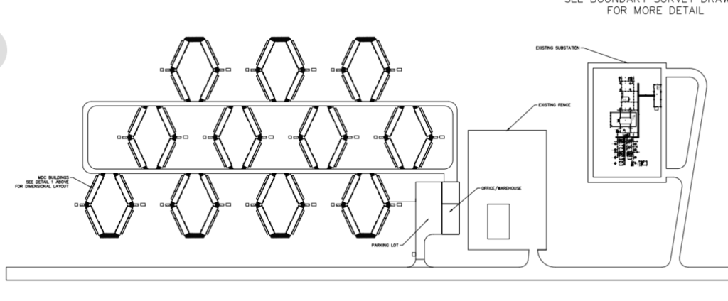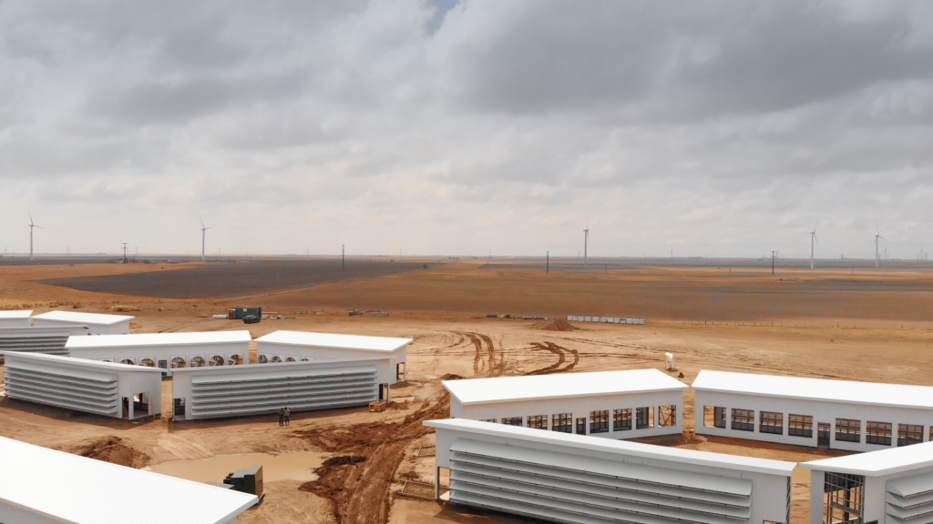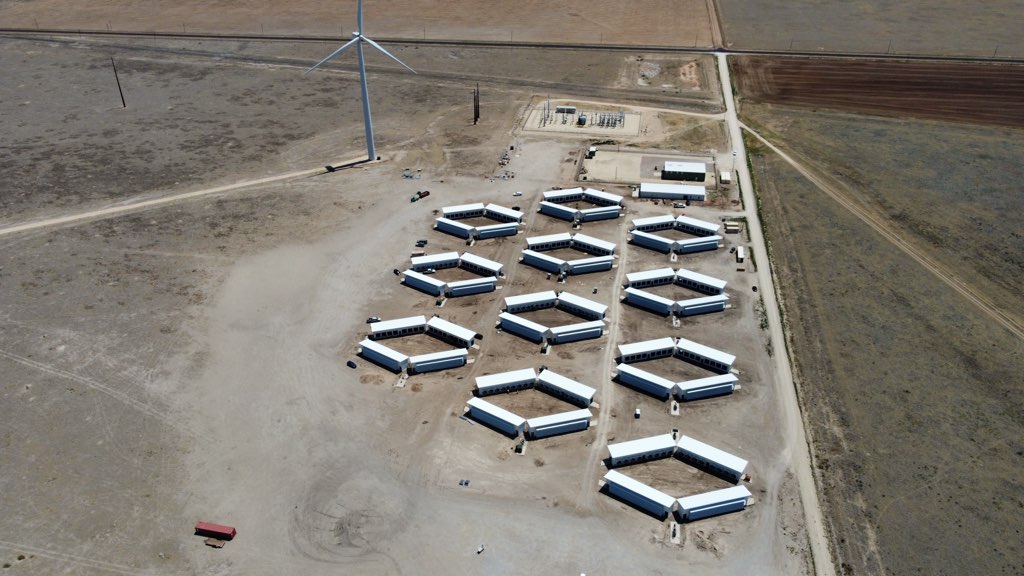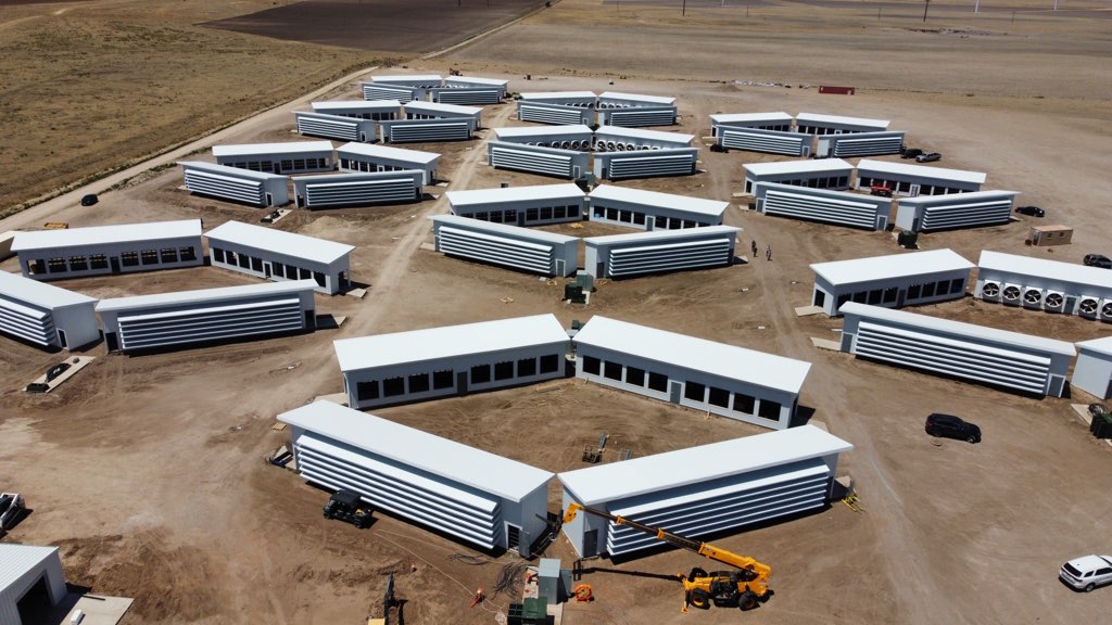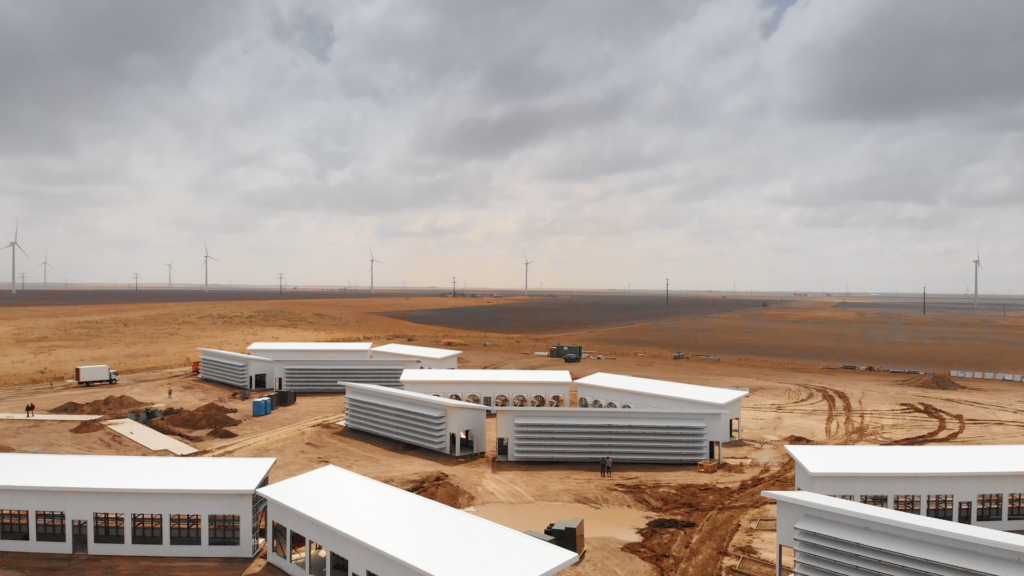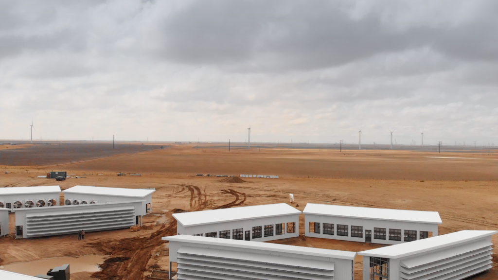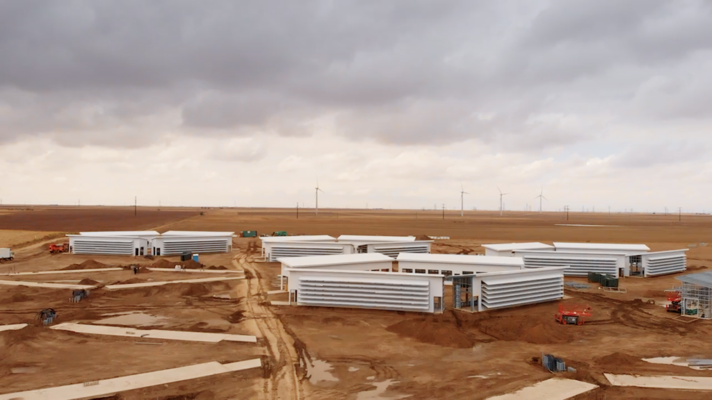A 100 megawatt data center in Texas with 50 megawatts live and 50 megawatts under construction. This site is connected to a wind farm with loads of excess energy. Here’s Dorothy influence…