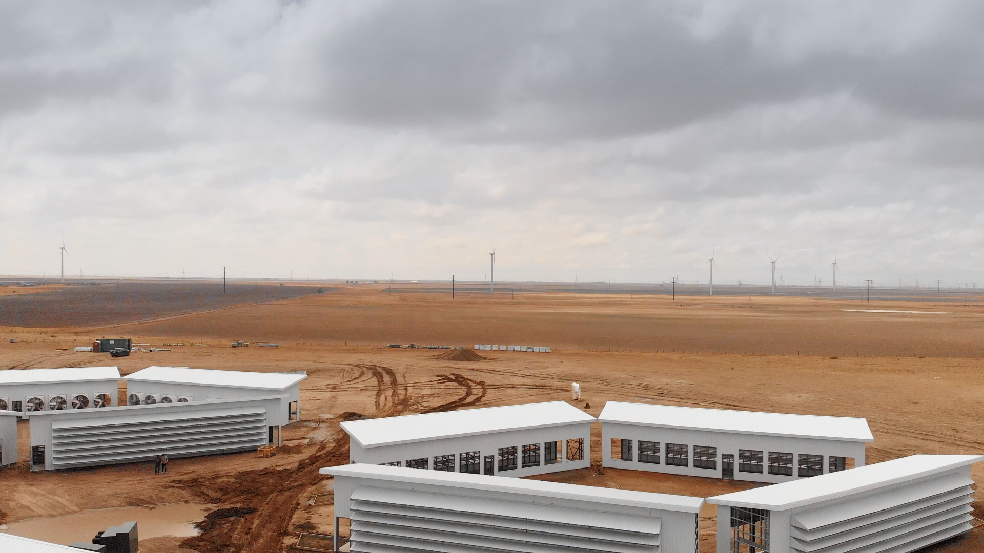 A 100 megawatt data center in Texas with 50 megawatts live and 50 megawatts under construction. This site is connected to a wind farm with loads of excess energy. Here’s Dorothy influence…